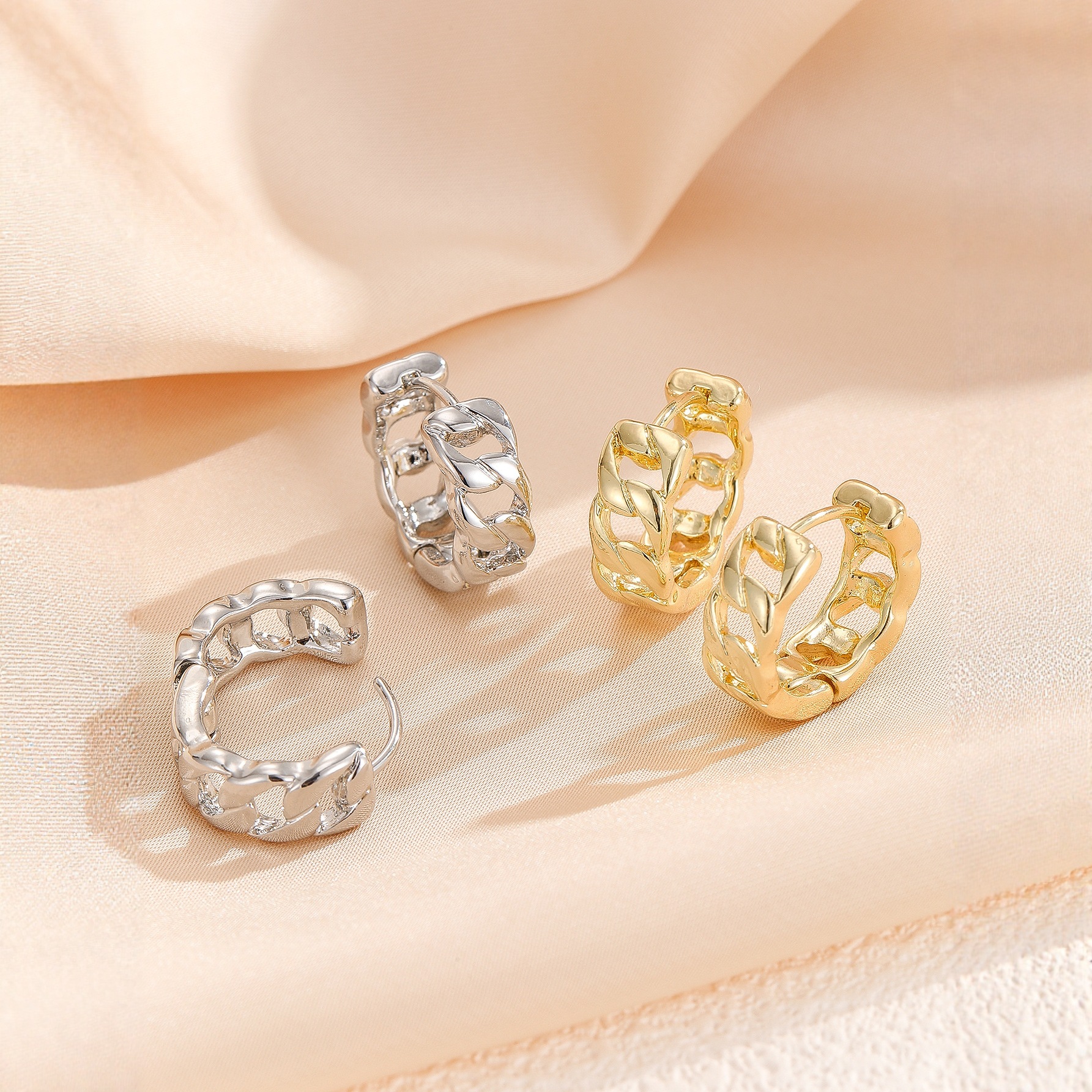 Metal Chain Hollow Geometric Elliptical Earrings