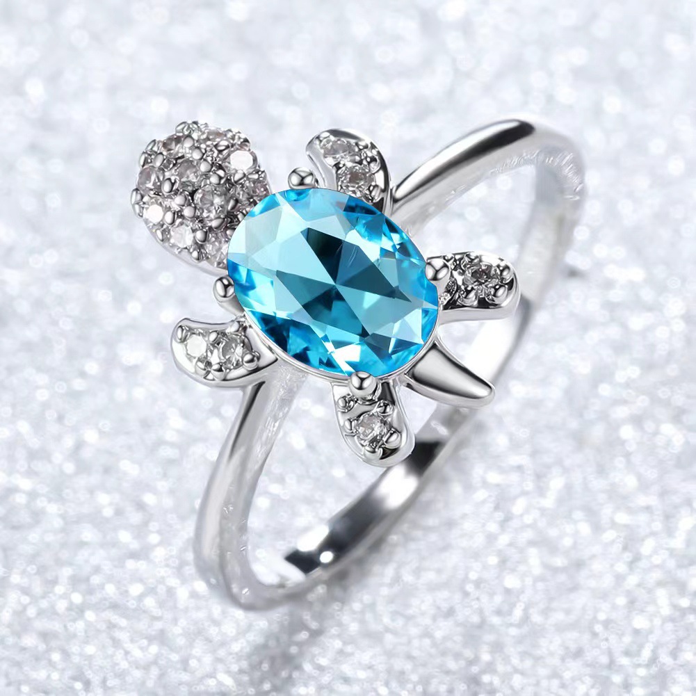Platinum Ring With A Colored Tortoise Design Featuring Blue Diamondsunisex